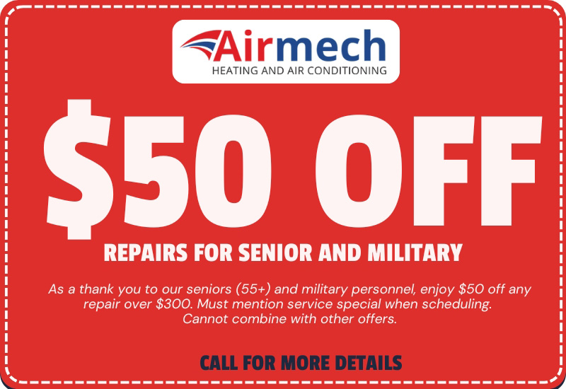 At Airmech Heating & Air Conditioning, we believe that everyone deserves a comfortable, energy-efficient home without the financial burden that often comes with HVAC repairs or replacements. That’s why we offer a variety of exclusive specials designed to make maintaining and upgrading your HVAC system more affordable. Our promotions allow you to enjoy top-tier services and high-efficiency HVAC solutions at a fraction of the cost. Whether you’re dealing with an unexpected repair or planning a system upgrade, we have a special offer to help you save big.